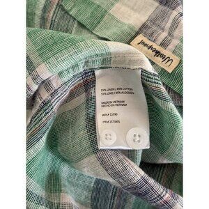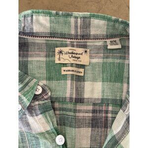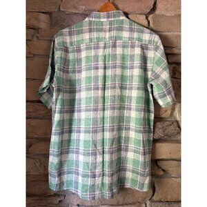 Stay cool and comfortable in this lightweight Weatherproof Vintage short-sleeve button-down shirt. Featuring a classic green plaid pattern and breathable 55% linen / 45% cotton blend, this shirt is perfect for warm-weather wear — ideal for casual summer outings, vacations, or backyard gatherings.