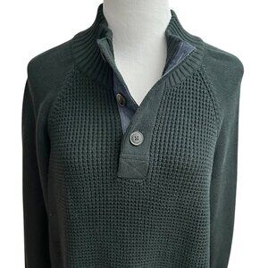Weatherproof Vintage Men's Size M Green Knit Pullover Sweater 3 Button Mock Neck