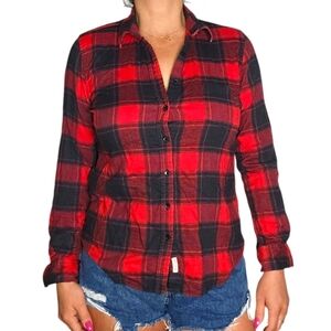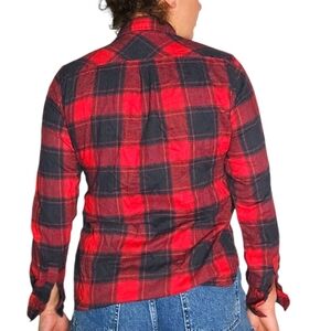 Weatherproof Vintage Plaid Red Black Long Sleeve Button Up Shirt Size Medium