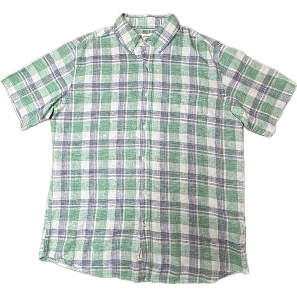 Upgrade your casual style with this Weatherproof Vintage Mens XL Plaid Short Sleeve Shirt perfect for warm weather and coastal living. Made from a soft, breathable washable linen blend, this shirt keeps you cool and comfortable while looking effortlessly polished.