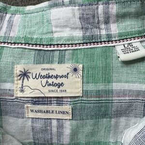 Weatherproof Vintage Shirt Men XL Plaid Washable Linen Short Sleeve Coastal