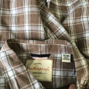 Weatherproof Vintage Shirt Men XXL Brown Button Plaid Casual Classic 100% Cotton