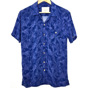 Weatherproof Vintage Mens Shirt - Size Small - French Navy - Palm Print - Button Up - Hawaiian - Tropical- Vacation Shirt - Resortwear - Lightweight - Soft