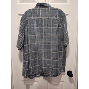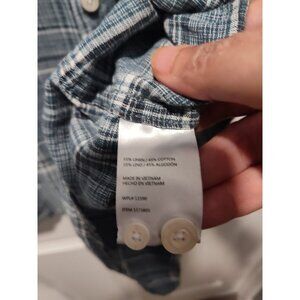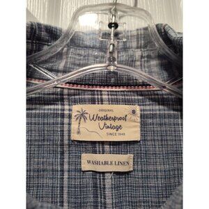 Weatherproof Vintage Shirt Mens XL Blue Washable Linen Blend Short Sleeve
