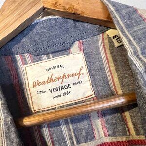 Weatherproof Vintage Short Sleeve Linen Striped Button Up Shirt XXL Coastal