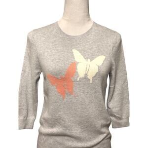 Weatherproof Vintage Sweater Soft Cotton Cashmere Butterfly Design Gray W XS NWT