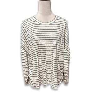 Weatherproof Vintage Top Striped Long Sleeve Relaxed Fit Ribbed Gray/Cream M NWT
