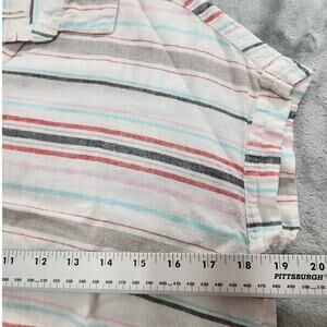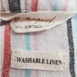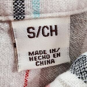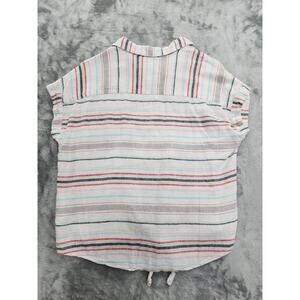 Weatherproof Vintage Top Womens S Striped Washable Linen Tie Front Button Front