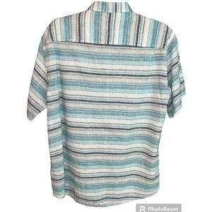 There is nothing better than washable linen in the summer! 55% Linen/45% Cotton, short sleeves, light and breezy. Enamel paint buttons give a vintage feel. Perfect condition.
