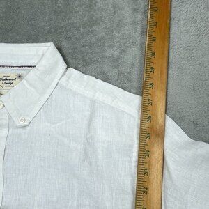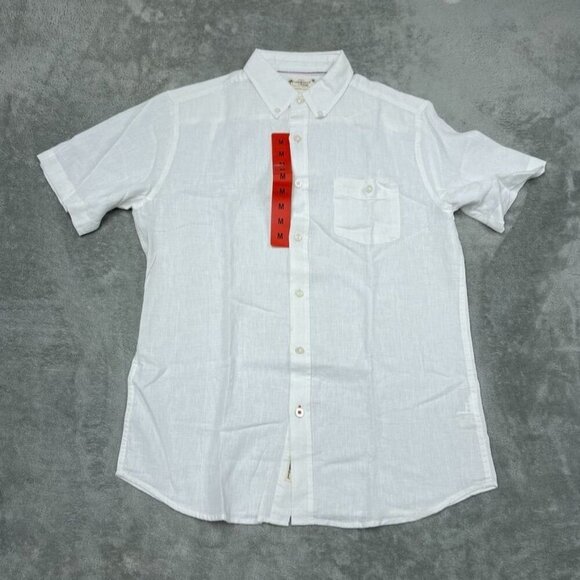 Weatherproof Vintage White Linen-Blend Short Sleeve Shirt Medium a0928
