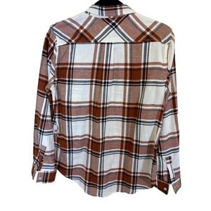 Weatherproof Vintage Women's Flannel Shirt Stretch Brown White Plaid Size M