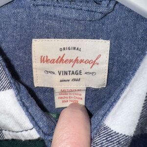 Weatherproof Vintage Women's Size M Blue Green Plaid Long Sleeve Flannel Shirt