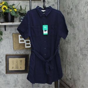 Weatherproof Womens Navy Button Up Gauze Belted Knee Length Shirt Dress XL