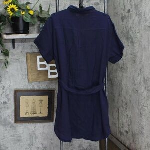 Stylish navy shirt dress. Features button-up front and waist tie. Perfect for casual outings.