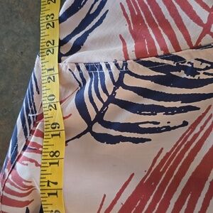 Stylish palm print jacket. Features navy and coral colors. Lightweight and perfect for layering. Full zip closure with hood.