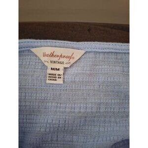 Weatherproof Womens Top Medium Blue Button Front Tie Hem Short Sleeve Cabincore