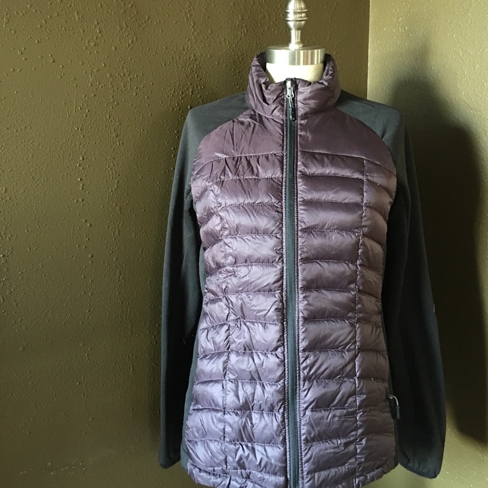 Purple and black down jacket. Lightweight. Zipper in perfect condition. Extremely warm. Perfect for hiking or jogging. Never worn!