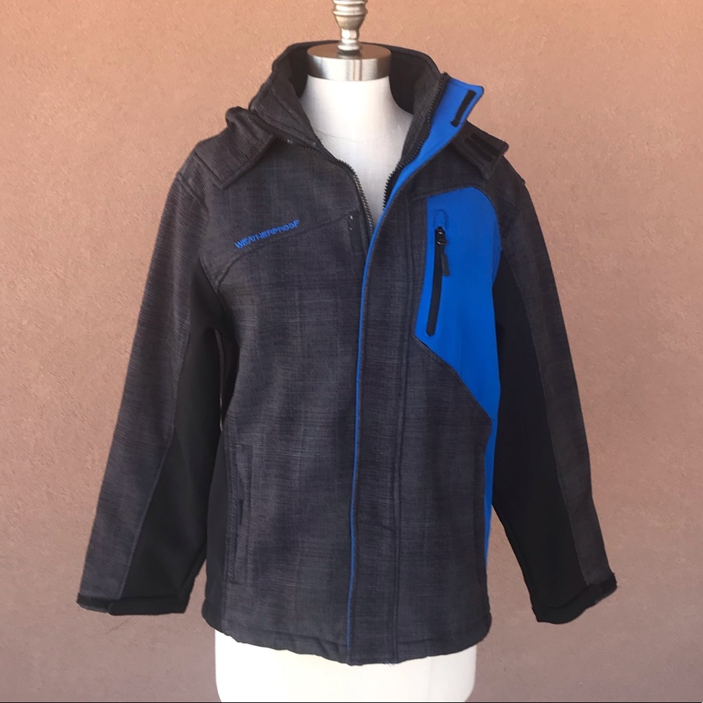 LC1005001-79 weatherproof hooded jacket size large men’s size large face 96% polyester 4% spandex back 100% polyester double zipper front good shape