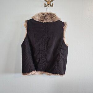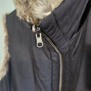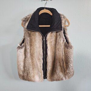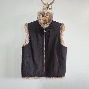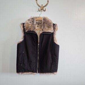 Weatherproof reversible zip-up vest, women’s size XL. This versatile piece features soft beige faux fur on one side and solid black on the other, giving you two distinct looks in one stylish layer. Both sides have functional pockets, with the fur side featuring hidden pockets for a sleek, polished finish. In excellent used condition, this vest is cozy, comfortable, and perfect for layering through multiple seasons. EUC - no matting. Washes great.