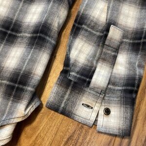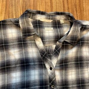 Weatherproof women’s XXL 2X button down flannel shirt Black Gray Plaid stretch