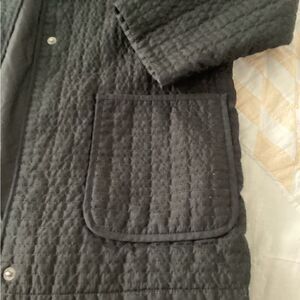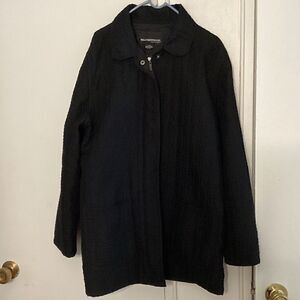 Weatherproof Large black jacket, front pockets, lined, zipper and snap closure, quilted, 40” bust, 31” long.