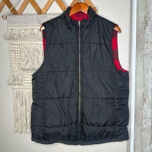 Weatherproof Reversible Black and Red Plaid Buffalo Check Men's Vest size large. Preowned. Excellent condition l. Worn nice. No flaws. Both sides have pockets.