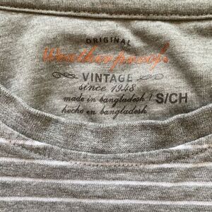 Weatherproof Small grey and white stripe shirt sleeve tee shirt.