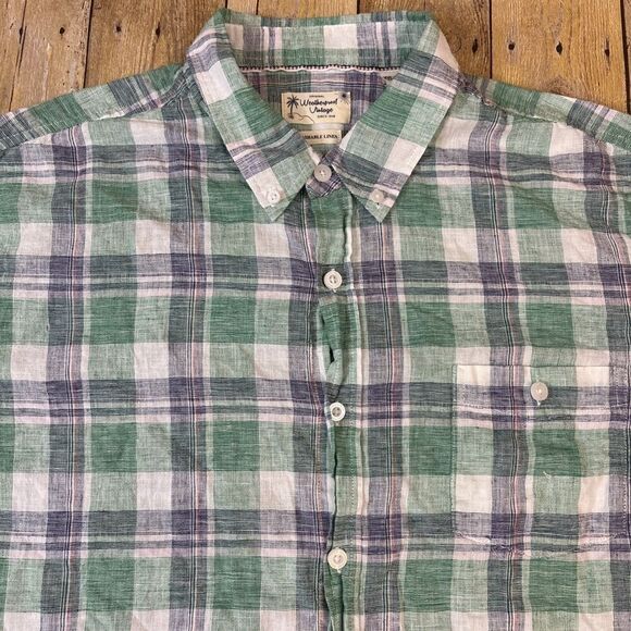 Weatherproof Vintage Washable Linen Shirt XXL 2XL Green Plaid