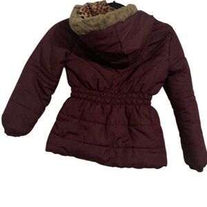 Weathertamer Girls Burgundy Hooded Puffer Jacket With Faux Fur Trim Size S/7-8