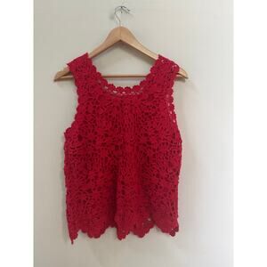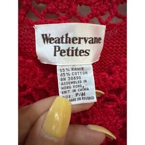 Weathervane Petites Vintage Crochet Sweater Tank Red Preppy Classic Festival
