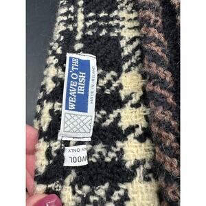 Weave o' The Irish Wool Scarf Black White Plaid Large EUC