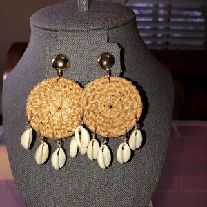 Weaved Rattan Shell Earrings Handmade Straw Wicker Braid Woven