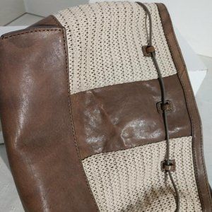 Weaved brown/off white boho bucket Nanette Lepore handbag