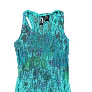Weavers Blue Teal Lace Sheer Racerback Tank Top Size Small Mermaid Floral