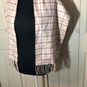 Pale pink, white, and gray plaid scarf