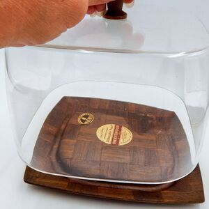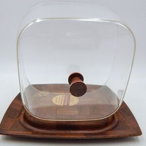 Weavewood Covered Cheese Tray With Clear Lid Handwoven Walnut MCM