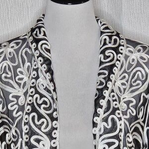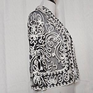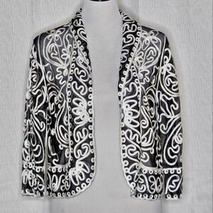 Weavz Sheer Black White Ribbon Swirl Abstract Open Front Dressy Bolero Jacket