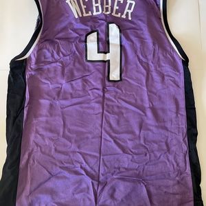 The vinyl has some wear on it & a small stain, but no holes or tears in the jersey itself.