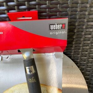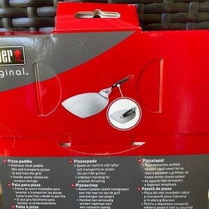 Weber Original stainless steel pizza paddle with a sleek black handle and silver paddle. Perfect for pizza enthusiasts.