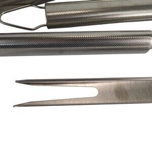 This 3-pc Grilling Set from Weber includes a 17.75" spatula, 17" fork and 19" tongs. All made of stainless steel, textured grip handles, and loops for hanging. Measurements exclude the hanging loop.