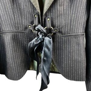 No rips or stains. 100% Wool Made in Italy. Pit to pit laid flat is 17.5". Sleeves are 25" long. Shoulders have light padding. Shoulder to shoulder laid flat is 15.75". Blazer is 23.5" long.