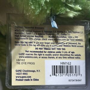 Webkins tie dye frog, 2008 release, still has original tags in plastic protector. Great condition. Kept in storage. Soft, clean.