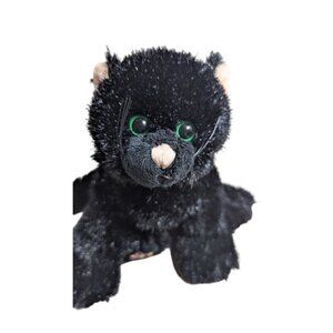 Webkinz Ganz Black Cat Plush *No Code* green eyes pink nose 7"