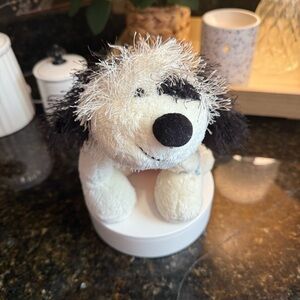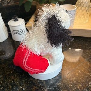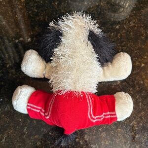 Adorable Webkinz plush dog wearing a red outfit. Features black and white fur with a cute design. 55