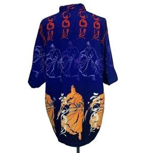 Webs Men’s 2x XXL Button Down blue Samurai short sleeve Shirt