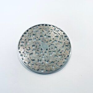 Webster Sterling Floral Chasing Engraving On Glass Trivet