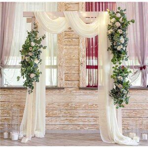 Wedding Arch Fabric Drape Beige 3 Panels 6 Yards Sheer Backdrop Curtain Chiffon