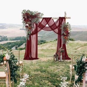 2pcs Artificial Burgundy Deluxe Swag with 2pcs Sheer Drapes for Wedding Ceremony Arbor Reception Backdrop Rose Floral Decoration