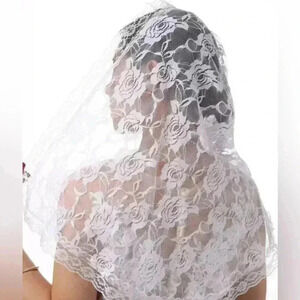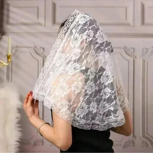 Wedding Bridal Short Lace White Veil Shoulder Length Applique Lace Edge