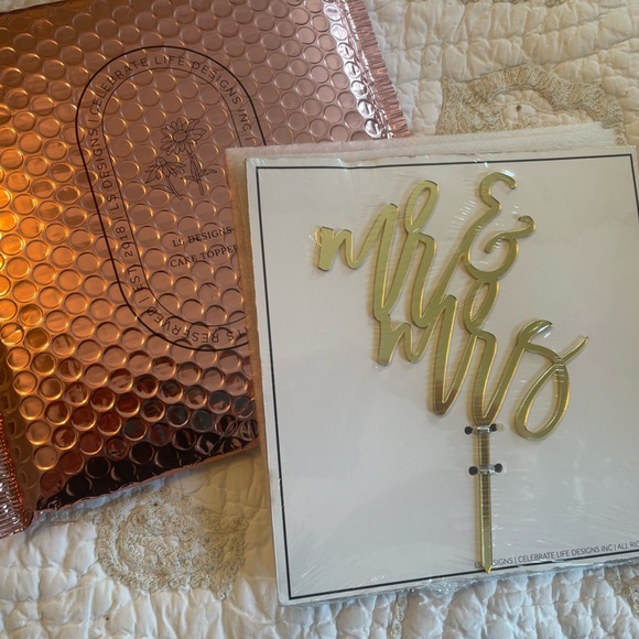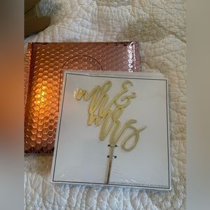 Mr & Mrs gold cake topper.